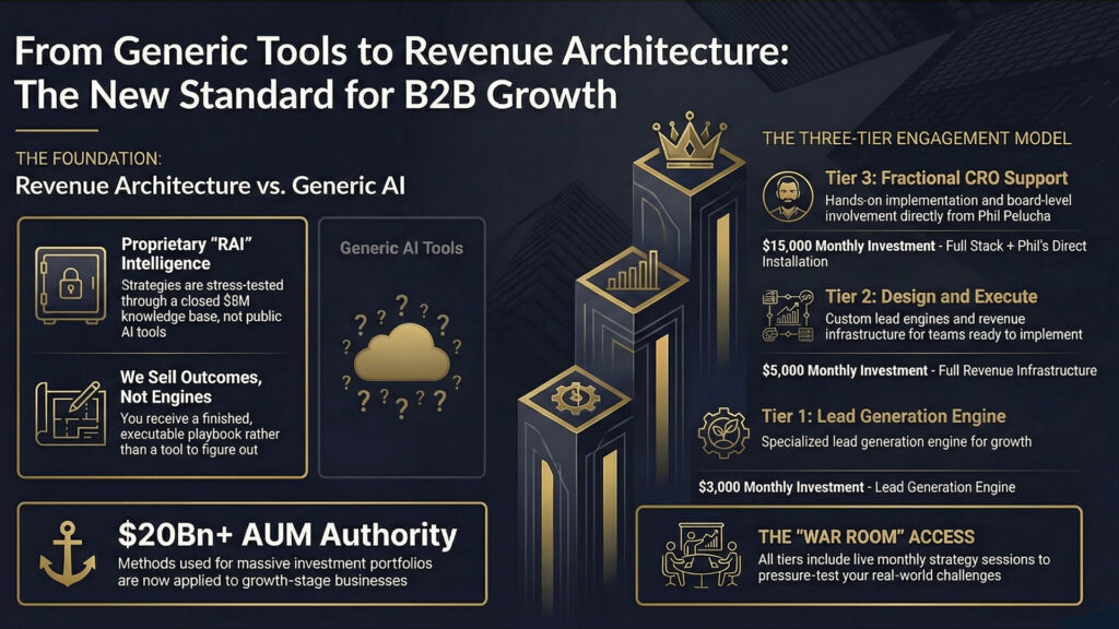 Strategy tells you where to go. Architecture determines whether you can get there. Most growth-stage B2B businesses have a reasonable commercial direction. What they lack is the infrastructure to execute it consistently, the outreach sequencing, the offer packaging, the follow-up discipline, the objection handling, the pipeline hygiene.